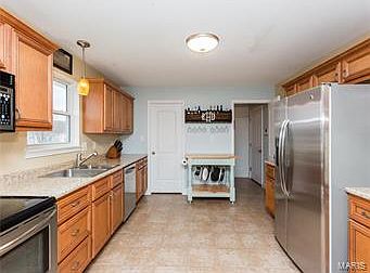 This stylish 3 bed/2.5 bath Ranch Home in Jefferson R-7 School District & coveted Timberwolf Subdivision checks all the boxes!!! Feel at home the moment you walk through the front door to the open floor plan, beautiful hand scraped hardwood floors, and many updates throughout. Including but not limited to: ceramic tile in the kitchen and baths, frieze carpet in all the bedrooms, updated ceiling fans, additional trimwork, new water softener, active alarm panel, smoke detectors & NEW garage door & NEW roof! The main level is complete with Master Bedroom/Full Bathroom Suite, Laundry Room & Walk-in Kitchen Pantry, but the real Show Stopper is the NEWLY RENOVATED Lower Level featuring a custom Wet Bar with one-of-a-kind Ash Wood Bar Top. The stained concrete on the Game Room/Bar side is on trend and makes entertaining spill clean up a breeze. On the Media/Family Room side is fresh new carpet and perfect projector set-up for those Movie Nights! Can lights & Surround Sound just another perk!