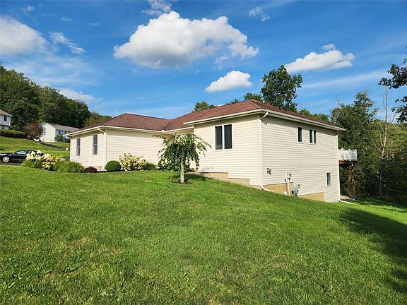 4 Bedroom Contemporary Ranch with 3 Full baths, Quality construction throughout, Large open deck with private backyard, Hardwood and tile floors, Andersen Casement Windows, 4 zone baseboard hot water heat and central air, freshly painted interior, first floor laundry, one-level living, custom moldings, maple kitchen cabinets with stainless appliances, Dining area with sliding doors to spacious deck with views, low taxes, master suite with jacuzzi whirlpool tub and enclosed shower, finished lower level with 4th bedroom or den/office, large workshop, unfinished family room, lower level with 9 ft ceilings, plenty of built in custom storage, nicely landscaped, new paved driveway, a gem of a home in move in condition.