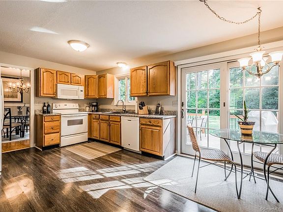 Pack your bags and move right into this impeccably maintained 3 bed, 1 & a half bath Colonial located on quiet cul-de-sac in one of Southwicks most desirable neighborhoods. You will fall in love the minute you pull up w/ the covered porch & professional landscaping. Inside you will find many updates such as fresh paint, light fixtures & flooring throughout. Come sit and relax in the living rm w/ fireplace which opens to the formal dining rm w/ chair rail. The eat in kitchen has loads of cabinet space, granite counters, new soapstone sink & is so light thanks to the slider which leads you to the newly re-built deck overlooking the park-like, fenced in backyard w/ new brick patio, hot tub & exterior lighting that abuts Conservation land. Laundry and a 1/2 bath finish the main level. head upstairs to all 3 spacious bedrooms w/ updated full bath. The basement is partially finished.There are new windows, new septic system & a 2 car garage.Close to rail trail, Whalley Park and so much more