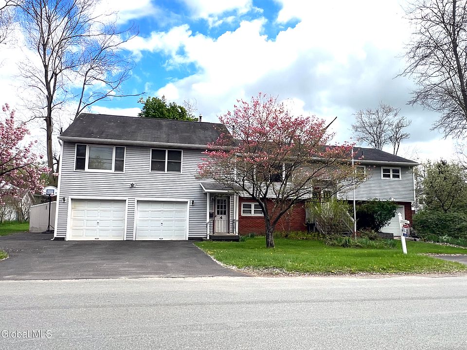 Discover the perfect blend of space, versatility and charm in this well maintained raised ranch duplex! Situated on a desirable corner lot in a residential neighborhood, this unique property offers a two story primary unit with ample living space, plus a separate 1 bedroom unit - ideal for rental income, extended family or private guest suite. The primary unit features an inviting floor plan, a large family room space with wood burning fireplace, kitchen with built in appliances, comfortable bedrooms and 1.5 baths. the second unit is a cozy, self contained space with its own entrance, offering privacy and convenience. Outdoor lovers will appreciate the partially covered, large wood deck, perfect for entertaining, enclosed 3 season space, beautiful yard with mature fruit trees and the outbuildings for the lawn toys. Two garages totaling 3 bays and multiple driveways provides abundant storage and parking, making this home a rare find. New roof, water heater, stove, carpeting and kitchen flooring in unit 2. Legal 2 family with public sewer and separate utilities! Don't miss the opportunity to own this versatile and income generating property - schedule a showing today!