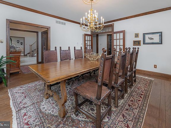 Gorgeous private setting on 6 acres of heavy wooded grounds with professionally landscaped specimen trees & gardens with circular driveway & wrap around side driveway to a 4-car garage. Cobblestones is a one of kind neighborhood by Bob Meyer which is neighboring a nature preserve that can never be built on. This custom home has a newer 50 yr shingle roof-2022, 3 newer skylights in the kitchen-2022, one of the HVAC systems was recently upgraded newer white oak hardwood herringbone floors in the great room & family room & recently painted throughout. You enter this house through a large 2-story foyer with marble floors and a curved staircase. In the great room there is a brand-new bar area with a soapstone countertop and sink with a waterstone faucet, floating oak shelving and antique mirror backsplash, all custom designed, with a new mini wine fridge in the cabinet and storage underneath. The Great room & family room share a double-sided gas fireplace, the office has custom built-ins, along with the entire home having high ceilings. The large kitchen has Viking double wall ovens, stainless steel fridge, stainless steel ice maker, and new Miele dishwasher, 4 burner cooktop with custom hood, eating area, pantry, granite countertops along with being open to the great room. The large primary bedroom has 2 walk-in closets, a sitting area, private bathroom & its own balcony allowing you to relax while looking out at the beautiful backyard & pool. In addition, there are an additional 3 good sized bedrooms along with 2 full baths. The finished walkout basement has multiple areas for storage, with gray marble-stained concrete flooring, two staircases, a full redone bathroom w/ walk-in shower & built in tile bench. There is custom molding throughout along with new lamp posts along the driveway, & European light fixtures on the outside of the house. The custom backyard is an oasis of privacy with a multi-level oversized Brazilian Ipe wood deck with a staircase leading to the large inground gunite pool. There is a custom screened in porch off the kitchen overlooking the backyard with blue slate flooring. There is EP henry brick paver patio in backyard, plenty of space for kids or dogs to run around and play. There is both normal and deer fencing. There is a 26-zone sprinkler system that is fed by private well. Located in the highly rated Medford township school district, near centennial lake, conveniently located a short distance from Philadelphia, the shore, this one of kind home will not last long.