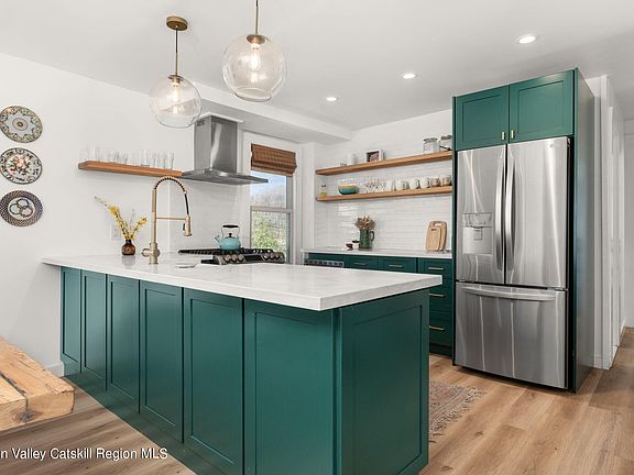 A mere 7-minute drive from Kingston's vibrant Stockade, Rondout, and Mid-Town Arts districts, the residence offers a rare blend of rural tranquility and urban convenience. Across the street lies Cas Landi Park, providing instant access to many outdoor activities. Additionally, a nearby kayak launch and marina allow for exploration of the scenic waters of Rondout Creek.