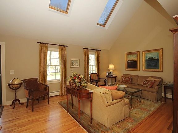 Cape Cod style home built in 1993, has been meticulously maintained. Many high-end upgrades have been added to this home including a professionally designed kitchen with Wolfe stove, Sub zero refrigerator and wine cooler, 2" custom granite counter tops, island and ASKO dishwasher. The home has a wonderful flow for entertaining and easy family living. Living room has hard wood floors and a vaulted ceiling with two skylights giving a spacious feel, dining room also has hardwood floors. A fireplaced family room with sliders to a deck A half bath with laundry complete the first floor. Second level offers a spacious master bedroom with updated en-suite and sliders and to a deck over- looking back yard. Two guest/children bedrooms and a second full bath. Out door living space has kitchen equipped w/ Lynx sear grill, refrigerator, sink and two fans. A Trex deck w/ hot tub, outdoor kitchen, shower and in-ground pool with stamped concrete surround. Attached 2 car garage.