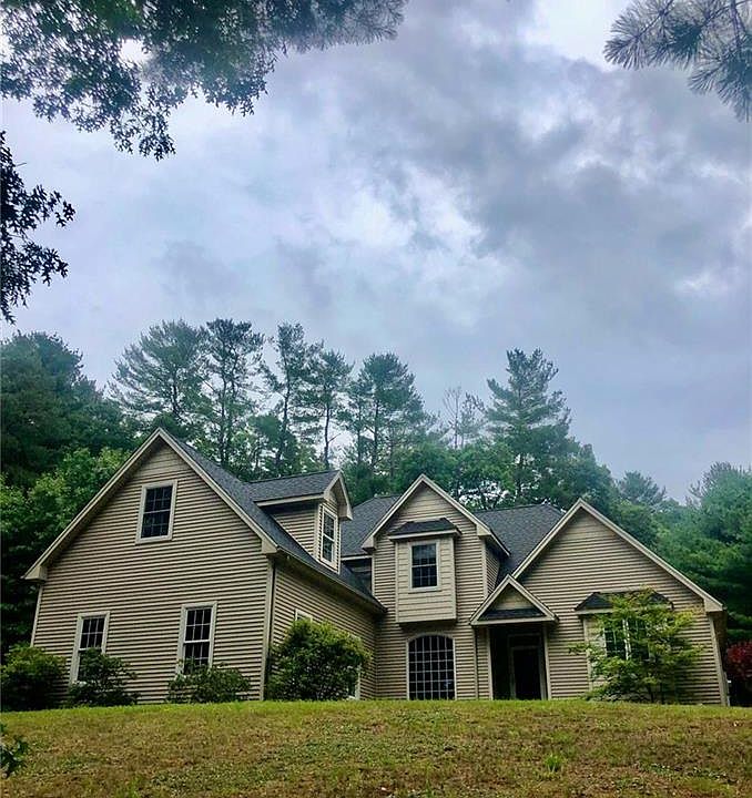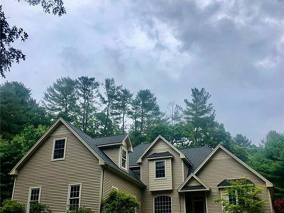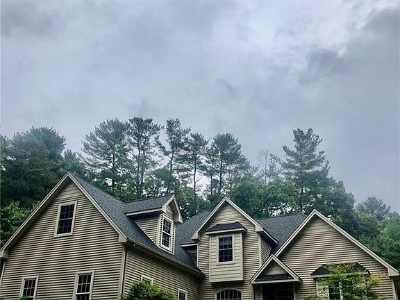 Situated on over an acre lot, this 4 bedroom open floor plan contemporary/colonial has a first floor large cathedral ceiling bedroom with full bath. Granite kitchen is open to a fireplaced family room with hardwood floors and large Anderson windows which provides plenty of natural light. The living room also has a vaulted ceiling, hardwood floors , fireplace and built ins. Also on the main level, is a formal dining room with chair rail and crown molding. On the second floor, there are an additional three more bedrooms- one of which has a jack and jill styled bathroom. There is an extra large ( Bonus room over the garage which is counted as the forth bedroom. The lower level has a partially finished room as well with lots of storage and shelving.