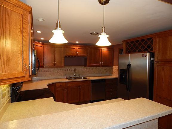 Great starter ranch home with beautiful kitchen and 1st floor laundry. Move in ready manufactured ranch with a fantastic, new kitchen (featuring great cabinets). Quiet, wooded neighborhood. Large family room with gas fireplace. Fenced in yard (great for pets) and covered patio out-back (with a fire pit). House sits on block crawl foundation with bulkhead door. Home is a 1974 double section modular home with central air conditioning.