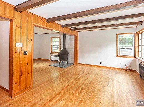 Welcome to this cozy, cape cod home on a cul de sac in Allendale! Looking for a location that is a short distance to the town center, shopping, restaurants, and train station? Your wait is over! This charming home features one floor living with a bedroom and full bath on the main level along with updated eat in kitchen, dining room, and living room with wood burning fireplace. There are hardwood floors and exposed beams in the dining. Second floor has two spacious bedrooms with walk in closet, a full bathroom and extensive storage. There is a full walk out basement with a finished family room, laundry room, storage, and utilities. Enjoy your summer nights on the back patio! Other great features include a large yard, in-ground sprinklers, and plenty of driveway space. Plus, a detached two car garage with electric and storage loft. A must see home in a great town!