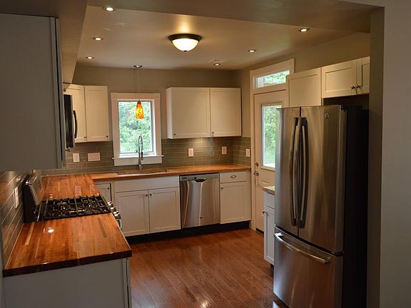 New Construction with Chef's kitchen! Completely rebuilt luxury executive townhouse with high efficiency central air conditioning and high efficiency natural gas furnace. All high end finishes included, featuring a chef's kitchen with all commercial stainless steel appliances (including 5 burner gas stove, fridge with ice maker, dishwasher, and microwave), solid slab cherry butcher block countertops, deep bay kitchen sink with "spring" faucet, under cabinet lighting, recessed lighting, glass tile back splash, and lots of cabinet storage. An elevated grilling/relaxation deck is located just off the kitchen. Enter the front of the home via the covered front deck into the living room featuring a gas fireplace with a detailed wood mantle and glass tile surround, and ceiling fan. Exterior doors with glass transoms and multiple windows per room shine abundant light in each area including the large dining room that is open to the kitchen. The first and third floors feature solid oak plank flooring. The full bath features an oversized granite double sink vanity, solid slate flooring, abundant recessed lighting and wall sconces, subway tile walls, and a shower/tub with subway tile walls with Carrara marble niches and details. Ceiling fans provide air circulation in both bedrooms, living room, and the third floor office / family room. The large open third floor features a family room area and den/office space area (both with vaulted ceilings) and laundry area (washer and dryer are included) with abundant cabinetry with solid cherry wood countertops, with finely detailed solid oak railings flanking the open staircase. Abundant storage with many closet areas and a walkout lower level for storage. This home features the finest craftsmanship, and has been designed and built to operate with the highest efficiency (lowest utility costs), with high efficiency appliances, high efficiency heating and cooling systems, and is insulated beyond code. Private parking adjacent to the kitchen grilling deck. 6 miles from Bucknell and Lewisburg. 20 miles from Geisinger and Danville. This home is offered at a rate of $1,725/month for a 3 year lease, $1,760/month for a 2 year lease, or $1,795/mo for a 1 year lease. The home will be available May 1, 2025. Applications submitted through this Zillow listing will be the first to be considered for showings and lease offerings. $1,725/mo for a 3 year lease, or $1,760/mo for a 2 year lease, or $1,795/mo for a 1 year lease.