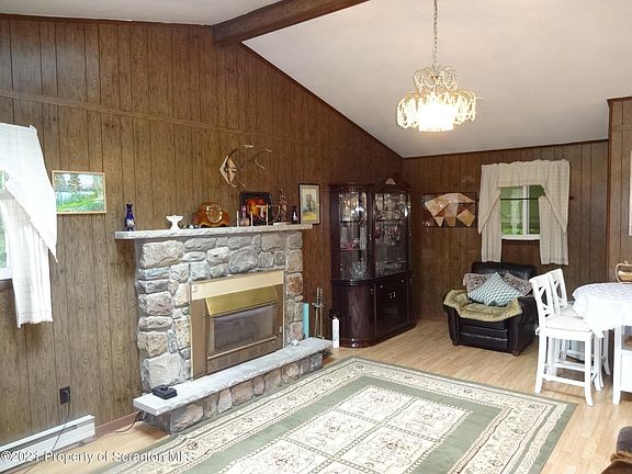 Adorable well-kept ranch on corner lot in amenity-filled Big Bass Lake. Great location and walking distance to the beach. This well maintained home has a newer kitchen and flooring. Gas fireplace in the living room. The outside was just painted. There's a large enclosed porch in the rear and a SAUNA and shower in the basement! Fully applianced and ready for your summer enjoyment. LOW TAXES! North Pocono Schools.