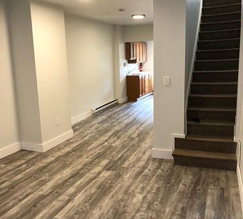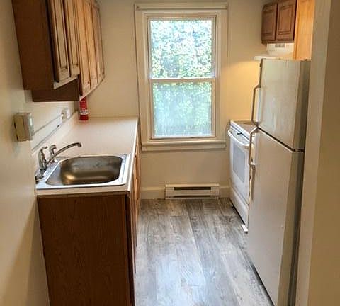 Very nice small townhome with 1 bedroom plus walkthrough office/nursery. Unfinished walkout basement for storage. One bathroom on upper level. Washer/dryer hookup in basement. All electric utilities. 800 sqft not counting basement. Electric baseboard heat. Window AC (if desired) provided by tenant. No Pets. Tenant pays utilities.