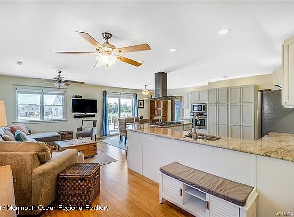 Little Egg Harbor- Mystic Islands. STUNNING WATERFRONT with Maintenance free exterior enhanced by professional landscaping provides time to enjoy all that lagoon front living has to offer.This Pristine raised 3 bed 2 bath waterfront ranch home was completely brought down the studs and rebuilt with every detail in mind- An open concept floor plan -a Custom designed kitchen w/state of the art appliance package. living/dining combo with slider to the back deck for all your Summer entertaining or just soaking up the sun, Whether you are looking for a SUMMER HOME or a year-round residence, this is a must see home. Beautiful Views, Newer Vinyl bulkhead plus a floating dock. QUICK ACCESS to Bay- So Just bring all your water toys, & experience what we offer at the Jersey Shore. W