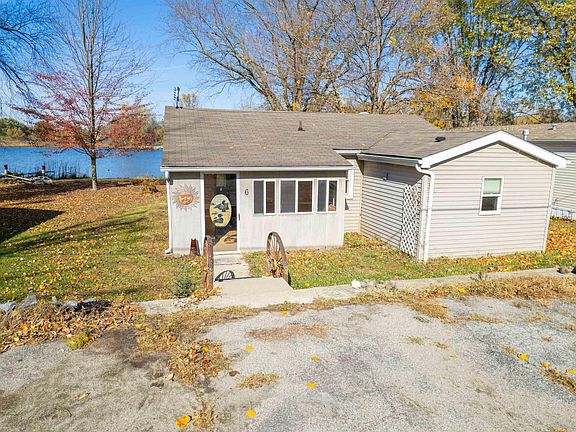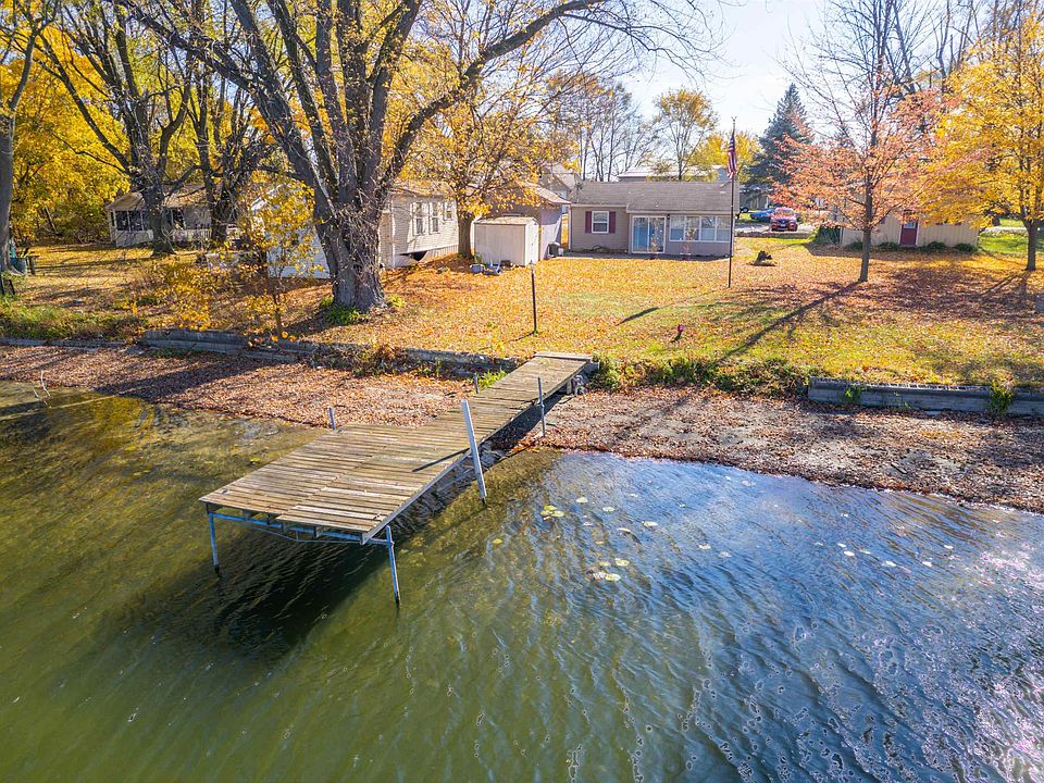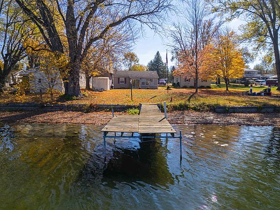 LAKEFRONT! Rare opportunity to own 100 feet of lake frontage on private Long Lake. Enjoy year round fun or summer stays and fishing days in this nearly 1000 square foot cottage. One bedroom and 1 & 1/2 bath with laundry hookup. Two enclosed porches and a quaint living area with pellet stove (gas forced air furnace also). Take in a water view from the kitchen where all appliances remain. Warm up after ice fishing in the 24x24 detached and heated pole building complete with a bar, tv hookup, and workbench space. Lakeside fire pit for entertaining, pier, and 2 sheds are also included. Plenty of space for a new construction home in the future!