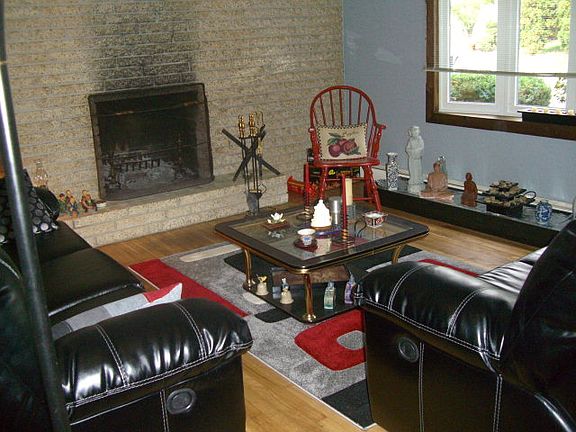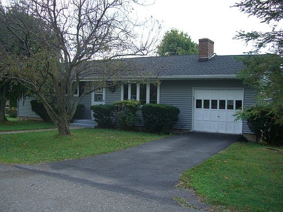 Pack your bags and move right in this lovely ranch home with stone fireplace in the living room, open kitchen- dining area with sliding glass doors leading out to large deck. Kitchen has all the appliances and a new stove top. Bathroom is large and modern. Home is being professionally cleaned. New $10,100 architectural shingle roof installed March 2014. Full cement basement with washer and dryer. Well is shared with neighboring property.