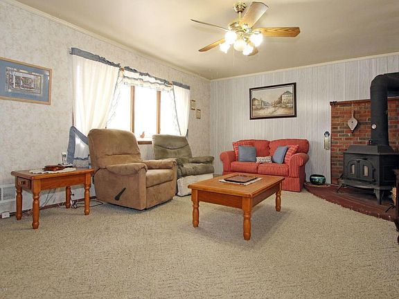 - Included: Blinds/Shades, Light Fixtures, Outdoor Lighting, Gas Cooking, Screens, Stove, Wall Oven, Attic Fan, Counter Top Range, Wood Stove