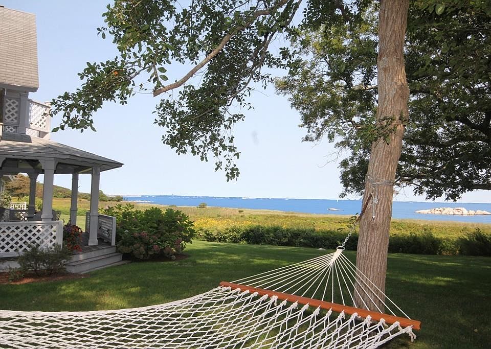 Nonquitt; Rarely Available Direct Waterfront Home. Spectacular ocean views from this charming summer house featuring a wonderful wrap around covered porch, fireplaced living room with French doors and bay window, dining room with French doors to porch, kitchen with island and banquette, laundry room and half bath complete the first floor. Upstairs there is a master bedroom with balcony overlooking the water, four additional children's/guest bedrooms and two baths...A bricked courtyard separates the house from a one bed/one bath guest "cottage"...Detached one car garage...Nonquitt amenities include golf, tennis, camp, boating and white sandy beaches...Pack up the kids as soon as school is out and head to Nonquitt for the first of many many summers!!!