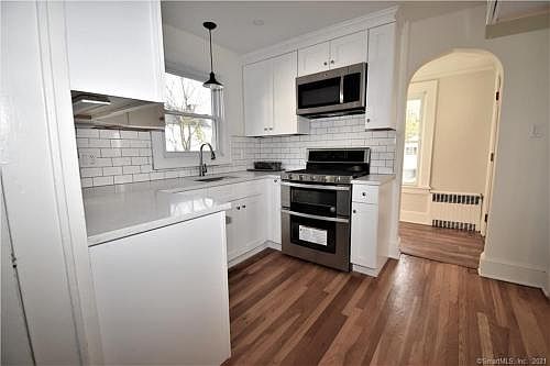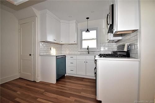 This sunny and warm 3 bedroom vintage 1920's Colonial exudes charm and character. Wonderful spacious living room and dining room with archways, high ceilings, and hardwood floors throughout. Completely remodeled kitchen with hardwood floors, new cabinets, countertop, and appliances. Finished 3rd floor offers space for an office or just relaxing. Additional bath in lower level, 1 car detached garage, and patio overlooking large and private backyard. This location offers convenience to shopping/Mall, restaurants, schools, and Merritt Parkway/I-95. Move right in Freshly painted, and refinished hardwood floors.