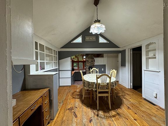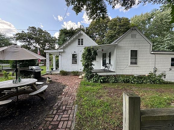 This charming 2 bedroom ranch awaits its new owner! The kitchen has a skylight and pine wood ceilings. The dining room has cathedral ceilings and built ins. The comfy living room has a wood stove and leads out to the front porch. The main bedroom has a fireplace and French doors that lead to a wood deck with views of the beautiful backyard. The full bath, laundry room and another bedroom round out the first floor. The wooded lot has 3 sheds (one can be used as a man cave or she shed), a detached garage with storage, a deck, porch and patio. New roof was put on in 2019. New water heater in 2019. Come see this adorable home and make it your own!