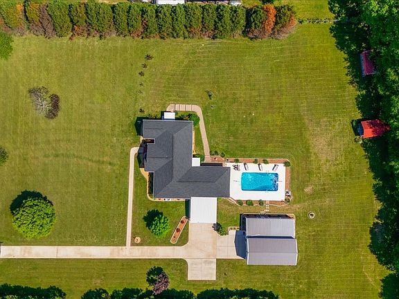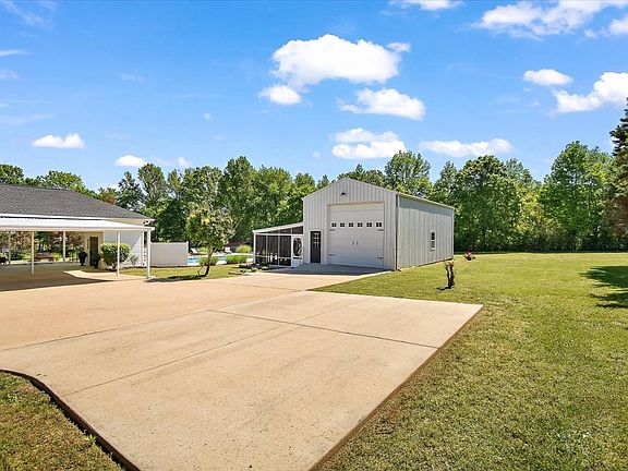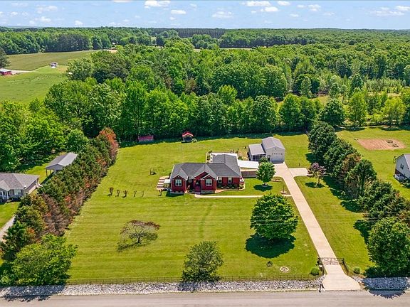 Discover easy living in this beautiful, all-brick home, thoughtfully designed with comfort, convenience, and quality in mind. Whether settling with a growing family or looking for the perfect place to retire, this single-level home with finished walk-out basement offers everything you need. Find 3 spacious bedrooms, a dedicated office, 2 full bathrooms, laundry room, & bright, airy open concept living space—all on one level for ease of access. Every window & door is adorned w/ plantation blinds, adding a classic Southern touch. The master suite is a true retreat, featuring a custom-built closet system, walk-in shower, large linen cabinet & a walk-in bathtub for added safety and luxury. The finished walk-out basement includes a family room, a full bath, storage room & additional room currently utilized as a bedroom w/ oversized closet. W/ two cozy gas fireplaces, one on each level, & an electric chair lift to the basement, comfort and accessibility are built right in. The roof & central unit were both updated in 2021, & the HVAC includes an I-Wave air purifier for dust-free, clean air living. Outside, enjoy the oversized carport & a covered patio area that leads to the 16x30 in-ground saltwater pool with two-year-old system. Next to the pool is 14x40 screened-in patio offering additional space for gatherings. Walk into the 20x40 detached garage with a full bathroom & on-demand hot water. It also has a 12' tall door for your RV. All of this is nestled on 2.5 meticulously manicured and fully fenced acres—perfect for letting your small dogs run free. You’ll never worry about storms and power outages w/ the 22kW Generac natural gas generator (installed in 2021) that powers the entire house, pool, & garage. With Loretto fiber internet, gas on-demand hot water heater a water softener system & included freezer & fridge in the basement, this home is move-in ready. Southern living at its finest—schedule your showing today!