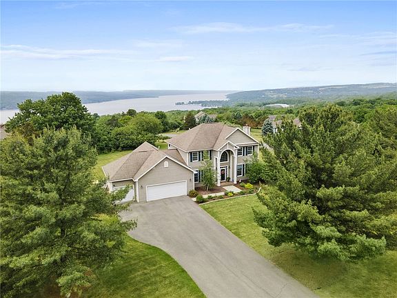 Custom built and meticulously maintained 4 bed, 3 full bath Contemporary home located in the Cayuga Highlands subdivision on Cayuga Lake. Fabulous location with stunning year round lake views! Spacious main level with an open floor plan includes formal entry with 2 story foyer, family room, updated kitchen, formal dining room, a generously sized living room with gas fireplace and  a bedroom with attached bath. Red oak flooring throughout most of the main level and  tons of windows to maximize light exposure and highlight those amazing Cayuga Lake views! Upper level has 3 large bedrooms including a primary bedroom with en-suite with whirlpool tub that looks out towards the lake. Partially finished lower level with additional space for a workshop/rec room and extra space for storage. Expansive back deck makes a perfect place to relax and  watch the gorgeous sunsets or entertain friends and  family. A  paved driveway, 3 car attached garage and large private partially wooded 1.46 acre lot round out this houses offerings.  The large back deck provides expansive lake views. Conveniently located to Cornell, Ithaca and all the Finger Lakes have to offer.