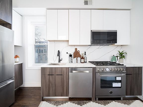 Find your perfect fit with flexibility, freshly finished modern homes and fantastic location in Jersey City Heights. This 2 bedroom, 2 bath rental is available are one block from Pershing Field Park and close to the 2nd Street stairs and Light Rail. The newly refinished interiors features warm hardwood floors, exposed brick elements and lots of light streaming in from 3-sides of the corner building. Kitchens feature sleek white quartz counters, natural wood or white cabinetry, and high-end Bertazzoni stainless steel appliances. Bathrooms are designed with matte black tiles, smart mirrors, and a combination bathtub and shower. Each unit includes a brand-new LG washer and dryer for added ease. Jersey City Heights offers the best of urban living with vibrant community, boutique shops and restaurants, beautiful parks, excellent schools and easy access to NYC and surrounding neighborhoods.