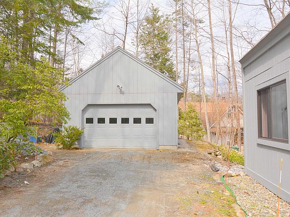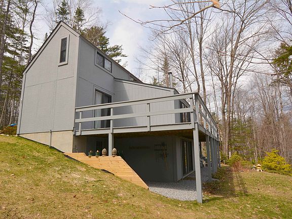 Yankee Barn Home with Golf Course views, mountain views and 3 levels of living space! This 3-bedroom, 2-bath home features a large wraparound deck. Living room with vaulted ceiling, wood stove hook-up and sliders to the deck. Kitchen with a collapsible breakfast bar opens to the dining area. Convenient first-floor bedroom with deck access. Climb the spiral staircase to the upper level to find 2 more bedrooms and another bathroom. Finished, walkout lower level has a spacious family room and laundry/utility room. Complete with a 1-car detached garage and upgraded septic design. The Eastman Community offers recreation for all four seasons. Lake activities, golf, tennis, pickleball, cross-country skiing, snowshoeing, ice skating, walking trails, an indoor pool, fitness center and more! In the heart of the Dartmouth - Lake Sunapee Region with easy access to I-89