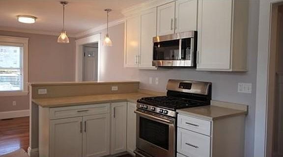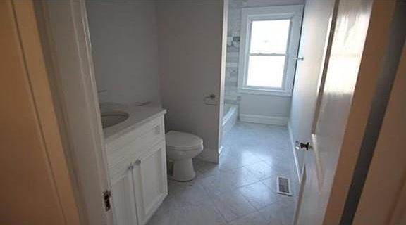 This very high end renovation features hardwood floors and Central Air throughout. Chefs kitchen features quartz countertops, Bosch appliances, and plenty of cabinet space. Large private deck perfect for table and chairs off the kitchen. The first floor features a large living room with a decorative fireplace, good size dining room space, 2 nice size bedrooms, and a bonus room that would make a great office. 2 Full baths both with marble tile. 2 nice size bedrooms on the main level. Ground level features a large open room, great for rec space/ family room, full tiled bathroom and In unit laundry. 1 Garage spot and 1 off street spot included. Private storage space and attached garage. Located directly across from a Cabot park. Close proximity to Newtonville Commuter rail, restaurants, Shaws supermarket, Whole foods, Dunkin Donuts, and mass pike. .05 Mile to Newtonville shops and COMMUTER RAIL to Boston