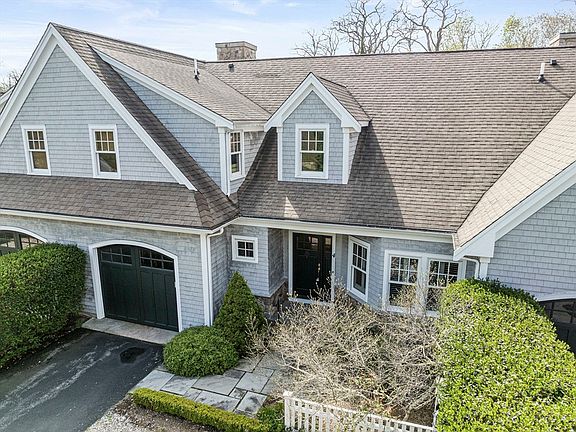 Welcome to Fieldstone Place! This boutique condominium complex offers a Nantucket style architecture in the heart of coveted W. Falmouth village. Expansive (2753 sqft) and airy, the layout offers both cozy and social gathering spaces with soaring ceilings and custom details throughout. A warm and inviting kitchen is open to a light filled dining room and pass through to the oversized family room boasting a gas fireplace, gleaming hardwoods and custom built ins. French doors lead to a private screen porch getaway. A main floor primary suite includes a spacious bedroom, large walk in closet, laundry closet and gorgeous full bath with upgraded finishes and custom built in cabinetry. Turned stairway leads to a lofted area with custom built ins (office or family space - you decide!), two generous sized bedrooms and full bath. Full basement has expansion potential. Additionally, an attached 1 car garage, guest parking and luscious landscaping - all this just awaiting a new family to love!