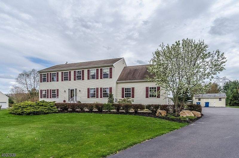 This expansive 4 Bed, 3.5 Bath Center Hall Colonial is a must see! A two-story addition consists of a Bonus Room w/ full Bath, Butler's Pantry Room and a spacious Laundry/Mud room with back staircase. Recent Kitchen updates include a granite center island, tile backsplash and second oven. A lovely Master Suite offers a Sitting Room/Office w/ wainscoted built-ins. The large, partially finished Basement has plenty of additional space for storage and work area with outdoor access. Enjoy views of the Winery's vineyards from the backyard on the maintenance-free Trex deck or paver Patio. Located in the desirable Woodside at Alexandria neighborhood and conveniently located to commuter routes 78, 22, 287, 31, N.J. Transit Trains and Trans-Bridge Bus Line Park & Ride locations. A one year Home Warranty is included.