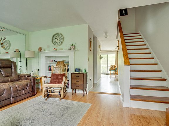 Welcome to Westview Ridge on the northern edge of Franklin, just minutes from the dynamic Franklin Falls recreational center! This townhouse style condo has been lovingly cared for by the same family for the last 20 years and it really shows. As you drive up the twisting, park-like private drive, Westview provides two parking spaces in front of each unit with plenty of visitor space. Landscaping, trash removal, and condo fees are included for a very reasonable monthly fee. As you walk in the front door, you are welcomed by the very bright and almost "beachy" feel from the tones and decor with abundant light passing through. Walk the hall to the eat-in kitchen which is nicely updated with oak cabinets, newer appliances, and custom built hutch with wine rack! The slider provides access to the awning covered, trex deck which has plenty of space to entertain or just relax. A half bath and storage closet round out the main floor. Upstairs, you will find the primary bedroom with vaulted ceilings capturing natural light and a large closet. The second bedroom is in the front on the unit and is very close in size and features! The full bathroom finishes the second floor living space. The basement is finished with a bonus room, perfect for an in home office, play space, or gym. There is a custom cedar closet, another office "nook", and large utility/workshop room with laundry! Owner occupied only, no rentals allowed.Showings start Saturday, September 2 at the open house 11am-1pm.