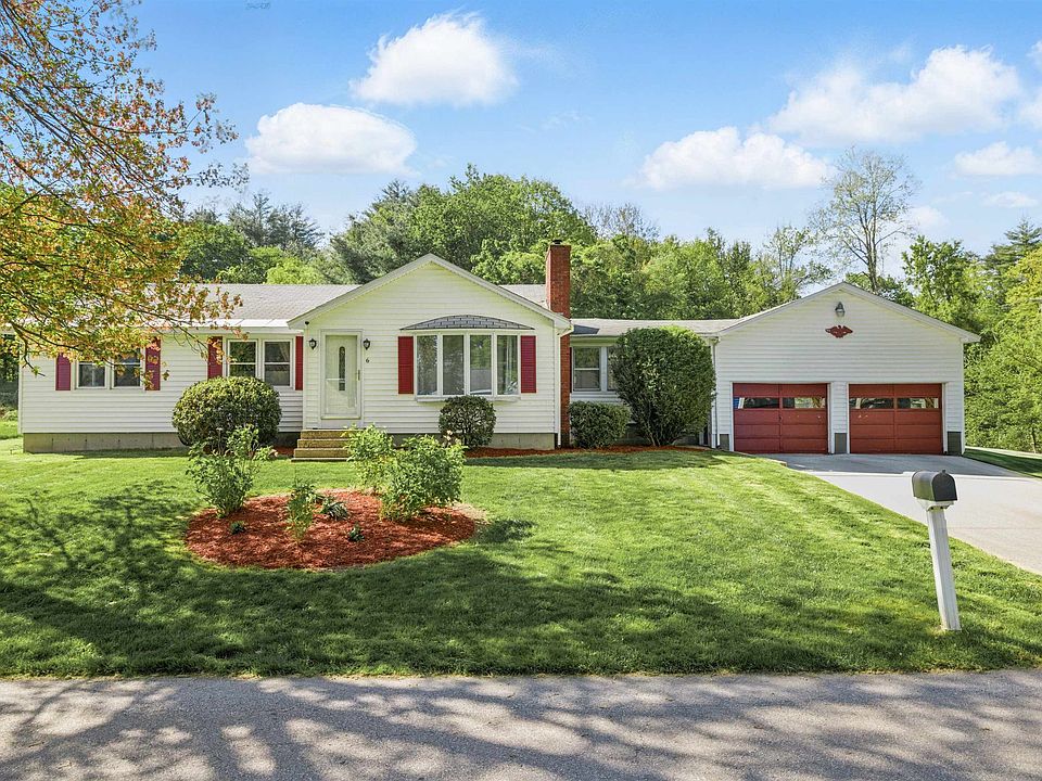 Welcome home to this spacious 3 bedroom ranch in Merrimack, NH! Set on a beautifully landscaped, level lot and located in a quiet neighborhood just minutes from commuting routes! Home features an oversized two-car attached garage- plenty of room for cars, toys, and tools! The side entry leads into a nice sized mudroom space and a lovely sun-filled three-season room. The sizeable kitchen offers ample counter space and cabinet storage, bar style seating, and plenty of room for your dining set! The large living/family room is truly the heart of this home with a brick hearth and newer Harman pellet stove insert- it's the perfect spot to cozy up on a cold winter day. Living room, hall, and bedrooms all feature oak hardwood flooring. Plenty of closets and storage space with first floor laundry option. Newer vinyl windows, upgraded electrical panel, patio area, and a massive basement for storage or future expansion. New Reeds Ferry shed in the backyard! Maintenance free vinyl siding exterior. Quick close possible, schedule your showing today!