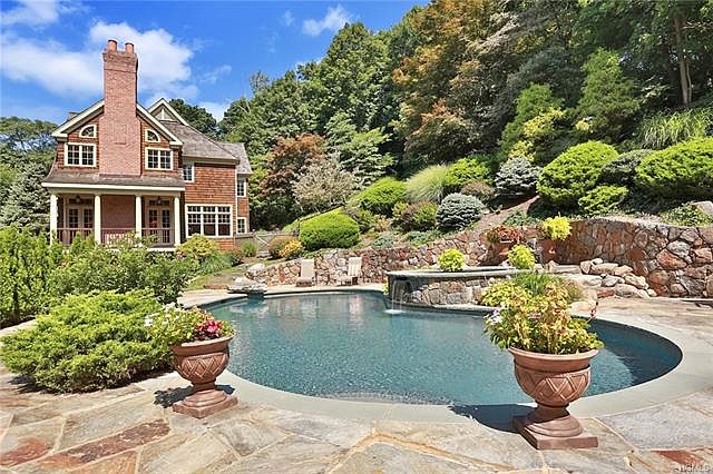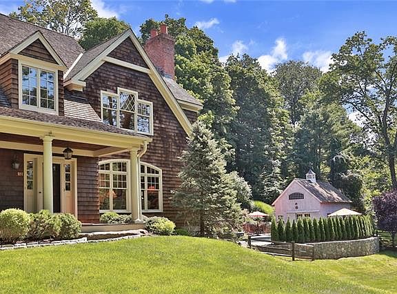 Wow, what a place to call home! Behind an electronic gate entry drive up to a beautiful courtyard where a custom designed Nantucket shingle style home privately sits. Built with quality construction and French country influenced interior details, this home is in impeccable condition. With a warm and inviting feeling from the lovely covered front porch, four fireplaces, a breakfast room with windows all around to an amazing barn/pool house for card games and fabulous dinner parties this home is perfect for entertaining. Views of the pool and Barn/Pool house make for a spectacular setting and this Whippoorwill location cannot get any better, close to town, major thoroughfares, schools and only a 10 minute ride to North White Plains train station for easy NYC commute. Enjoy your morning coffee on the covered front porch and wave goodbye to the school bus that stops at your gate.