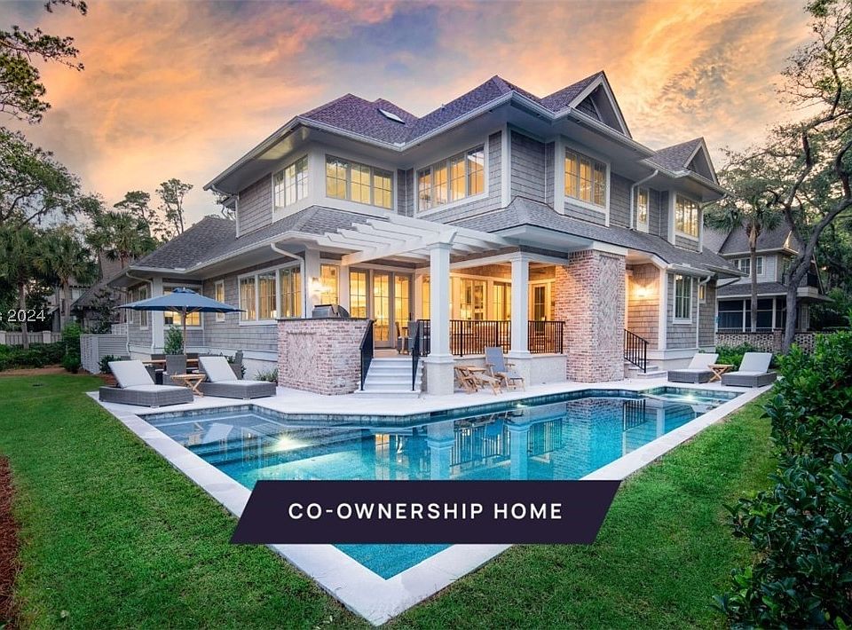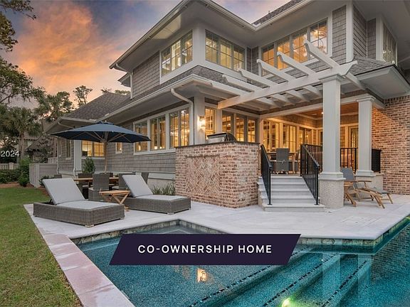 New co-ownership opportunity: Own one-eighth of this professionally managed, turnkey home. The soothing colors of the nearby ocean flow through this third-row home along the beach path in Sea Pines. Enjoy three levels of living and entertaining in this turnkey-ready, fully furnished, professionally managed home. The chef's kitchen and great room open to a covered porch with fireplace, television and grill, all overlooking the pool and spa. Six bedrooms (including a bunk room that sleeps four) have their own bathrooms. And an elevator makes three floors easy for all.