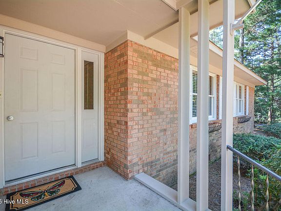 Single Story Brick Range in Quiet Pinehurst Cul de Sac. Large .40 Acre Yard fenced in the back. Lovely Hard Wood flooring in Main Living Areas, Formal LR with Gas Log Fireplace, Den, Formal and Informal Dining, 3BR/2BA. with Smooth Ceilings. Porch has 227 Sq. Feet enclosed by Easy Breeze windows not included in the advertised square footage. Garage is Ample at 626 Sq. Feet with Pull Down stairs for additional Storage. Laundry/Mudroom located off Garage and there is a large closet that could be a huge pantry but there is no shelving present. HVAC Replaced in October 2024. by Comfort Services. Propane Tank leased through Sandhills Propane. Roof is estimated at approx. 15 years old but no documentation to support that. Kitchen Cabinets just painted, Carpets & House Professionally Cleaned.