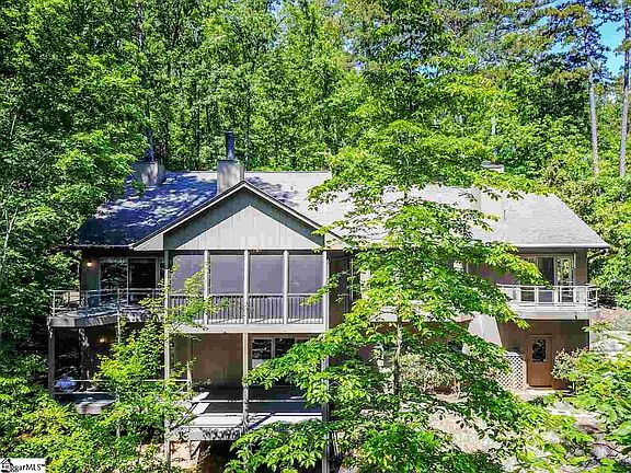 Located in the gated community of Keowee Key at Lake Keowee, this 3,900+ SF home has 3 bedrooms and 2.5 baths. As you enter, you feel the warm welcome of hardwood floors, vaulted ceilings and natural light streaming in from large windows in every room. Step down to the living room with an elevated, double sided fireplace. Have breakfast with the birds in this quiet room with glass doors that lead to a small deck. This would be the perfect place to sit on a comfy chair and read your favorite new book. Across from the living room/dining room there is a den with a wet bar that leads to a a large, screened porch. Great for entertaining or just relaxing. The master suite boasts a second, double sided, elevated fireplace. One side facing the sleeping area and the other a large, jetted tub. The perfect place to soak and enjoy a glass of wine by firelight.