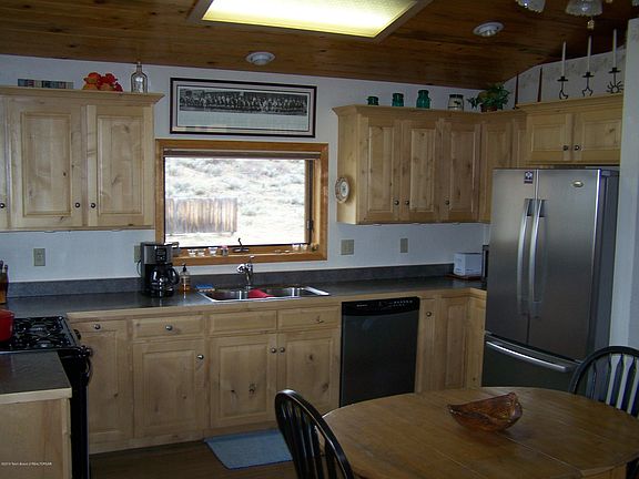 One of the finest views in the Upper Green River. Perfect size 2 bedroom cabin. The cabin has vaulted ceilings with eat-in Kitchen. Open living room from the kitchen inviting great entertaining. Cabin has a partial basement with a sauna. Two methods of heating, forced air and a pellet stove. A 3 car (1,280 sq ft) detached garage with guest suite above. The guest suite has a open floor plan with a 3/4 bath and beautiful views of the valley and mountains. Borders National Forest and access to the famous Upper Green River Valley.