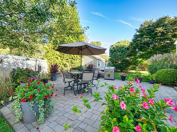 ABSOLUTELY STUNNING HOME! Nothing to do but drop your bags in this immaculate 4-bedroom, 3 full bath Colonial tucked away on a quiet cul-de-sac. Step into the beautiful, sunlit living room with soaring cathedral ceilings, open to the dining room for effortless entertaining. The large, remodeled eat-in kitchen features stainless steel appliances, granite counters, pantry, and a cozy breakfast nook. Gleaming hardwood floors run throughout the main level. A spacious family room with a striking gas fireplace is the perfect gathering spot. The three-season room offers peaceful views of the phenomenal backyard-ideal for morning coffee. The main floor bedroom (currently used as an office), includes a walk-in closet and Jack & Jill full bath. Upstairs, the primary suite boasts a walk-in closet and a beautifully remodeled full bath. Two additional generously sized bedrooms, another full bath, and a convenient laundry room complete the upper level. The basement, with 8-foot ceilings, offers easy finishing potential for additional living space. Outside, the grounds are simply exceptional, featuring a patio with seating area, fire pit, above-ground pool, partially fenced yard, shed, and irrigation system. Other highlights include central vac and an oversized, spotless two-car garage. Additional updates include new windows, roof, central air and hot water heater. This home is meticulously maintained! Floor plans, video tour and list of updates available.