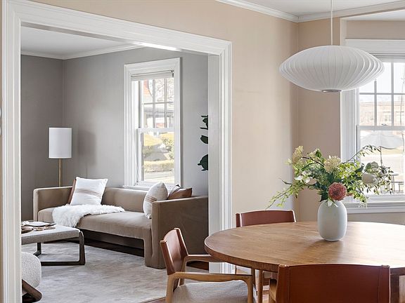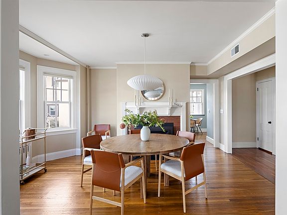 Arlington Center. 1900ca Tudor/Victorian attached-single blends turn-of-the-century charm with modern convenience. Located on a dead-end street, this home begins with a gracious front porch & entry door opening to a lovely period foyer with a 6-panel pocket door and robust balustrade. The first floor features high-ceilings, large windows, well-proportioned rooms and an original fireplace w/gas insert. The eat-in kitchen was completely remodeled with tall cabinets, honed stone counters, stainless steel appliances & a tucked-away half bath. The 2nd floor offers 3 bedrooms with 2 full modern bathrooms. The 3rd floor retreat can be a 4th bedroom, office or a play room. The finished basement makes the ideal family room and features a separate office. There's also unfinished basement area for laundry, storage and bikes. Modern infrastructure updates include, 4-zone forced hot water gas heating, 3-zones of central A/C, blown-in insulation, completely restored exterior & private patio.
