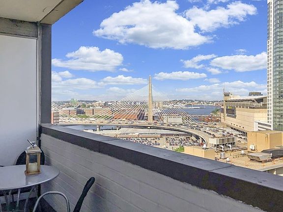 West End/CRP Near MGH! Fabulous 17th floor penthouse Studio with extra high ceilings. Private balcony with Zakim Bridge, water & skyline views. White kitchen with new stainless steel fridge & stove. Comfortable layout has a dressing area & huge closets. Whittier Place Condominium offers on-site management, maintenance & 24 hour concierge. Well located near MGH, MEEI, Boston Garden, Kendall, Whole Foods, Pace's, the Shopping & Restaurants of Beacon Hill, North End, Bulfinch Triangle & Government Center. All T lines, Zipcar, commuter rail, EZ ride & Partners Shuttle stops are nearby, as well as the Esplanade's walking/running/biking trails. Enjoy convenient city living! There is a health club with pools and a tennis club available to join within the park adjacent to the building. Reserved garage parking is available to purchase or rent. Many recent building upgrades, fabulous lobby renovation just completed. Seller will pay 100% of current special assessments. Now is the time to buy!