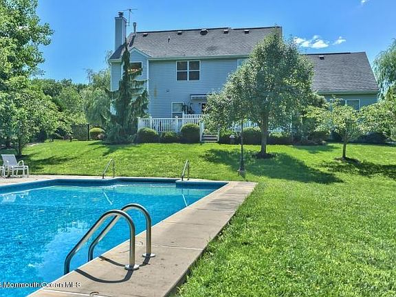 Nestled at the end of a cul-de-sac is your dream home. A two floor 5 bedroom 3.5 bath that is waiting for you. It features 5 large bedrooms including a guest room on the first floor with its own luxury full bathroom. There is hardwood flooring throughout the second floor. Saunter from your master suite with its updated his and hers bathroom and drink in the panoramic view of the in ground pool which can be seen from most bedrooms.There is ample storage in the eat- in- kitchen and more comfort to be found in the grand living room that boasts an ideal fire place. Entertain your guests by the pool or add that pergola you have always wanted. For those quiet days simply relax on your lounge chair on the manicured lawns and enjoy the added privacy provided by the lush mature trees on