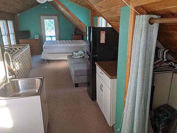 Includes Wireless Internet, water, and trash. Tenant pays propane heat and electric. Bright and airy feeling with cathedral ceilings! Rustic wooden beams Private 2nd floor deck overlooks backyard great for solitude Technically this is a room for rent but it is effectively a separate studio with it's own entrance and totally separate from the house. Fridge/freezer, kitchen sink, one burner stove/hotplate. Full bathroom. There's a nice little second floor deck to sit on too. Heat is propane or electric baseboard Owner pays hot water, trash, and wireless internet. Tenant pays propane heat and electric