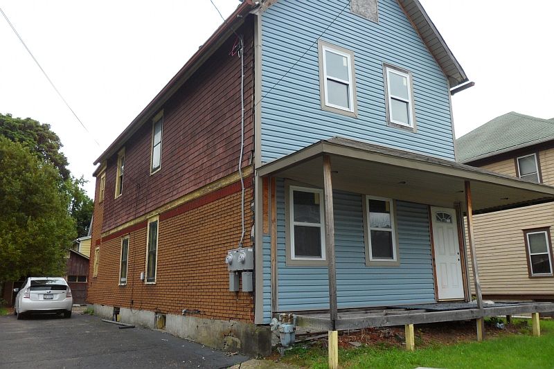 Great Bones with Upside Opportunity for Income. Property requires imagination and elbow grease Two to three bedrooms in each apartment and a two car garage. New wiring installed on second floor. New circuit boxes for each apartment. Seller will haul out remaining refuse.
