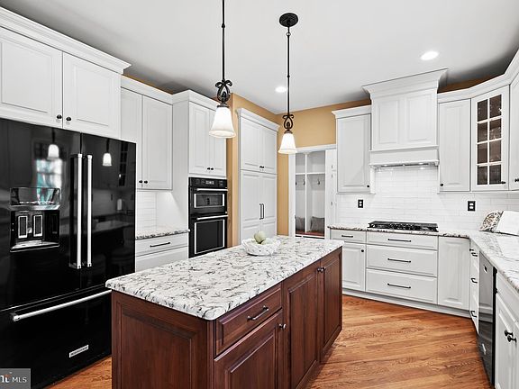 Welcome to 6 Windrose Circle, a stunning fully updated 5-bed, 2.1-bath home tucked away on a quiet cul-de-sac in the highly desirable Doylestown Lea neighborhood and just steps from the scenic Neshaminy Greenway Trail. Situated on over half an acre, this meticulously maintained property offers style, comfort, and functionality in one of Doylestown's most popular neighborhoods. A bluestone paver walkway welcomes you to the front entrance and into the impressive foyer, illuminated by a gorgeous porcelain chandelier. To the right, a spacious formal sitting room opens via French doors to a warm and inviting family room featuring a gas fireplace and oversized sliding glass doors that lead to a spacious paver patio—ideal for entertaining. To the left of the foyer, the formal dining room flows seamlessly into the fully renovated kitchen, with a convenient butler’s pantry in between. The kitchen is a chef’s dream, boasting custom two-tone cabinetry, granite countertops, additional cabinetry with built-in wine fridge, and custom blinds. Rich hardwood floors and beautiful crown moulding run throughout the home, complementing the refined finishes. The grand staircase leads to five oversized bedrooms, including a luxurious primary suite with two, large walk-in closets, and a spa-like bath featuring a stand-alone soaking tub, frameless glass shower, dual vanities and custom cabinetry. A completely renovated hall bath with designer tile flooring, contemporary lighting, large tub/shower and dual vanities with quartz countertops offer added convenience with every detail thoughtfully upgraded to combine comfort and style. The impressive finished basement provides multiple flexible spaces perfect for a home gym, office, playroom, or media area with ample storage space offered in the unfinished section. A large laundry/mudroom room on the main floor includes new washer/dryer units and built-in cabinetry for ultimate organization. A patio door from the mudroom leads you to a stunning paver patio that spans the entire back of the home and is surrounded by lush landscaping and wired for surround sound. The expansive side yard is ready for a pool or hot tub, with a 220V hookup already in place. Additional updates include a newer roof, windows, HVAC system, hot water heater, water softener, resurfaced driveway and wiring for a garage generator. This home has been meticulously cared for and is truly move-in ready! Located just a short walk to Central Park, scenic trails, Terrain at DelVal, and the soon-to-be-completed Doylestown Township Park Improvement Project, 6 Windrose Circle offers unparalleled access to comfort and convenience. Don't miss your opportunity to own this exceptional home in one of Doylestown's most popular communities!