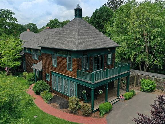 Impeccably landscaped grounds set the stage for this superbly crafted, Jack Kemper designed cedar-shingled home on private lane. Sophisticated Nantucket styling offers graciously sized, light, bright and open Living Spaces with 3 Bedrooms, 2 full and 2 half baths, a detached 3 car garage/carriage house, and multiple stone terraces on a private, fenced-in half acre lot. The double doors at the Front Entrance welcome you into the home's gorgeous double story Foyer, with a truly outstanding turned-wood staircase that's the heart of this amazing home. The open floor plan offers great spaces for entertaining, while the Kitchen/Family Room, with cherry inset cabinets, updated stainless appliances, stone countertops and a large center island offers a cozy family gathering space. French Doors and large windows overlook the side porch and flood the space with natural light. There's also a large, 3 Season Porch off the Kitchen that offers more room for dining or gathering, with stained wood ceilings and plenty of screened windows that have glass replacements so you can enjoy the room all year. Step out to a bluestone terrace that's private and shaded by the large pergola overhead. The gracious Dining Room offers more spectacular trim and large windows, with coffered ceilings that continue into the Living Room,with its fieldstone fireplace flanked by more beautifully crafted cherry built-ins. French doors open to a second private terrace; another perfect space for entertaining family
