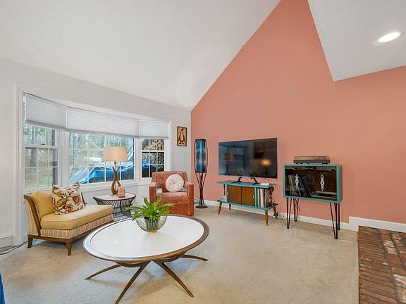 • Bar, Cathedral Ceiling(s), Dining Area, Hearth, Primary BR w/ BA, Natural Light, Natural Woodwork, Walk-In Closet(s)