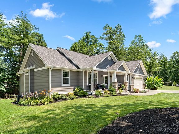 Welcome to 6 Wood Path Lane in South Asheville. This beautifully designed 3 bedroom/2 bath home has an open, split-bedroom floor plan, vaulted ceilings, stone fireplace, large bedrooms, oak hardwood flooring, and front and back covered decks to enjoy the well-manicured yard. The kitchen features granite countertops, stainless steel appliances, and a dining area with a large island, perfect for entertaining. You will love the spacious main suite with tray ceilings, and two walk-in closets. The luxurious ensuite bath features tile flooring, individual vanity sinks, large soaking tub, and separate tile shower. The home is nestled on .86 acres with a fenced in backyard and beautiful landscaping. Arbor Woods is a small community of lovely, newer construction homes in the T. C. Robertson school district, conveniently located between Asheville and Hendersonville. This home is a short drive to the airport, shopping, restaurants, and parks. Showings will begin Friday, July 21st at 9am.