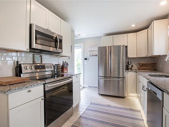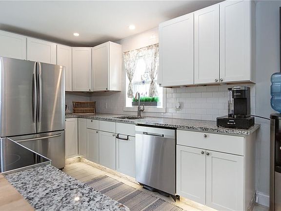 This bright and modern single level home was renovated in 2019/2020. Centrally located in Middletown on a quiet cul-de-sac, this three bedroom and one bathroom ranch is close to shopping, restaurants, beaches and the Navy Base. An inviting front porch welcomes you in to the residence. As you step in to the living room, you'll appreciate the beautiful hardwood floors and crown moldings in the living room. The dining room opens up into the kitchen and has wainscot paneling and room for a table of 6. The kitchen was redone with granite countertops, subway tile backsplash, ceramic tile flooring and stainless steel appliances. The three bedrooms all have hardwood floors and share a bathroom with granite countertops and ceramic flooring. The backyard is quite large and almost fully fenced in. An oversized single stall detached garage and young roof are an added bonus to this turnkey property!