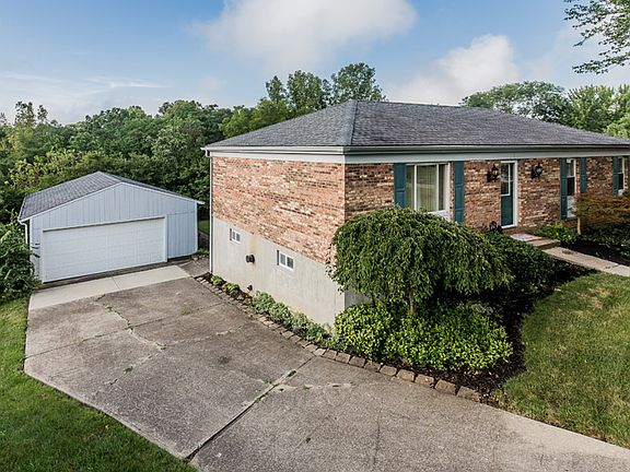 Brick ranch with large 2 plus car garage and private backyard located on a cul-de-sac just minutes from NKU and the expressways. This home has tons of square footage and a nice wooded view on just under a half acre lot. The finished lower level features two walk outs, a bar, gas burning stove, and a built in fish tank. The other half of the finished basement is currently being used as a 5th bedroom. Fenced in portion of the yard has a large metal shed.