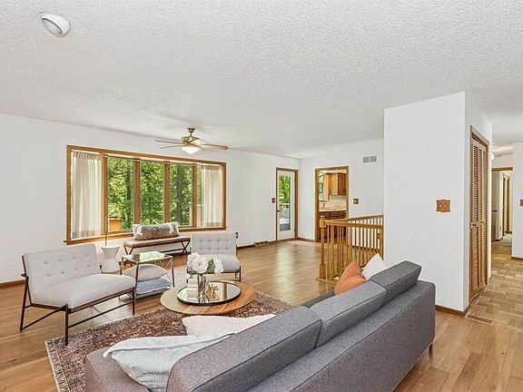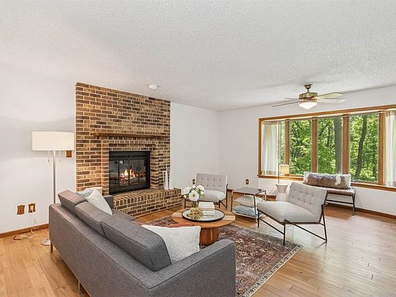 Tucked into a quiet cul-de-sac on 1.4 wooded acres, this home offers a rare blend of privacy and proximity to Iowa City. Hardwood floors and expansive windows in the main living areas bring in natural light and frame views of the surrounding trees. The formal living room features a broad bank of windows overlooking the backyard and wooded ravine. The dining area, just off the kitchen, offers similarly sweeping views. A large deck, accessible from the main level, creates a seamless connection to the outdoors. The main floor includes the primary bedroom and a full bath. The walkout lower level adds two additional bedrooms, a full bath, a spacious family room with wood-burning stove and handcrafted built-in bookcases, access to a patio, and spacious laundry room. This home feels like a quiet retreat in nature while being just minutes from Wilson’s Orchard and core Iowa City amenities. Private septic. Community well. Septic was pumped in spring of 2025.