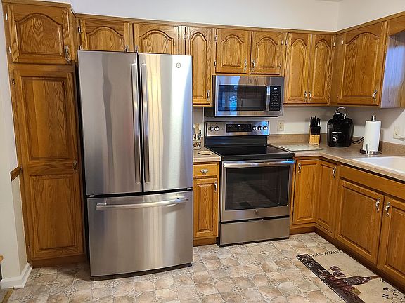 Bi-Level home in a cul-de-sac, that backs up to woods with a small creek that runs through the back corner of the property. On the upper level are 3 bedrooms, a full bathroom, kitchen, dinning room and living room (with a ceiling fan). Downstairs is a laundry area, family room with a coal stove and half bath. The deck is 8 ft. by 24 ft. (2 sections - 8 ft. by 12 ft. each). The original heating for the home was electric baseboard and coal stove but duct work was installed for future heat pump/central air at the time it was built. First heat pump was installed in 1996, then replaced in 2012. Improvements: Replaced all builder grade windows (that open). Heat Pump: 2012 Extra attic insulation: 2012 Insulated Garage doors & openers: 2014 Replaced all exterior doors: 2014 Re-shingle roof: 2015 Water heater: 2015 Toilet in half bath: 2015 Updated circuit breaker and GFC outlets: 2015 Full bath remodel: 2018 New kitchen appliances: 2019 Installed pressure valve for water heater: 2020 Photos were taken in 2021.