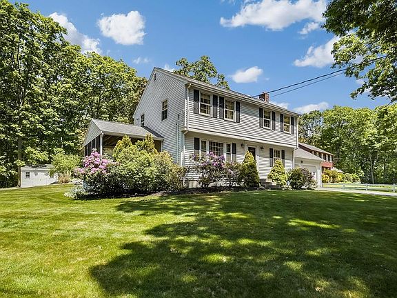 Wonderful colonial sitting on large wooded lot on a quiet dead end street! This home features custom maple cherry stained cabinets, granite countertops, stainless steel appliances and eat-in kitchen with french doors leading to private screened porch overlooking the wooded yard, fireplaced family room with plantation shutters, hardwood floors throughout. Roof was replaced in 2008, newer high efficiency heating system with 2 heat zones and central a/c on second floor. Yard has irrigation system. All appliances and window treatments included! New septic being installed!