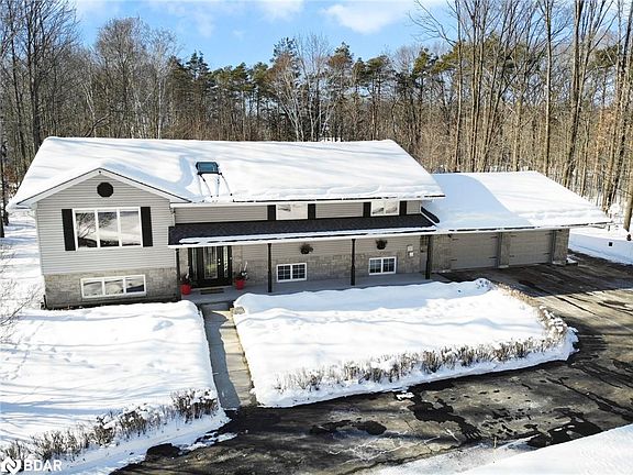 Beautiful Custom bungalow on 1.5 acres, nestled among mature trees, Only 15 min from Barrie or Orillia. Home features an open concept design w/large principal rooms. Vaulted ceilings. Large picture windows with stunning views. Prof fin bsmt w/ rec room, family room, kitchen, 4th bdrm & bath. Oversized Two Car Heated Garage. Close to all amenities, schools, parks, shopping.